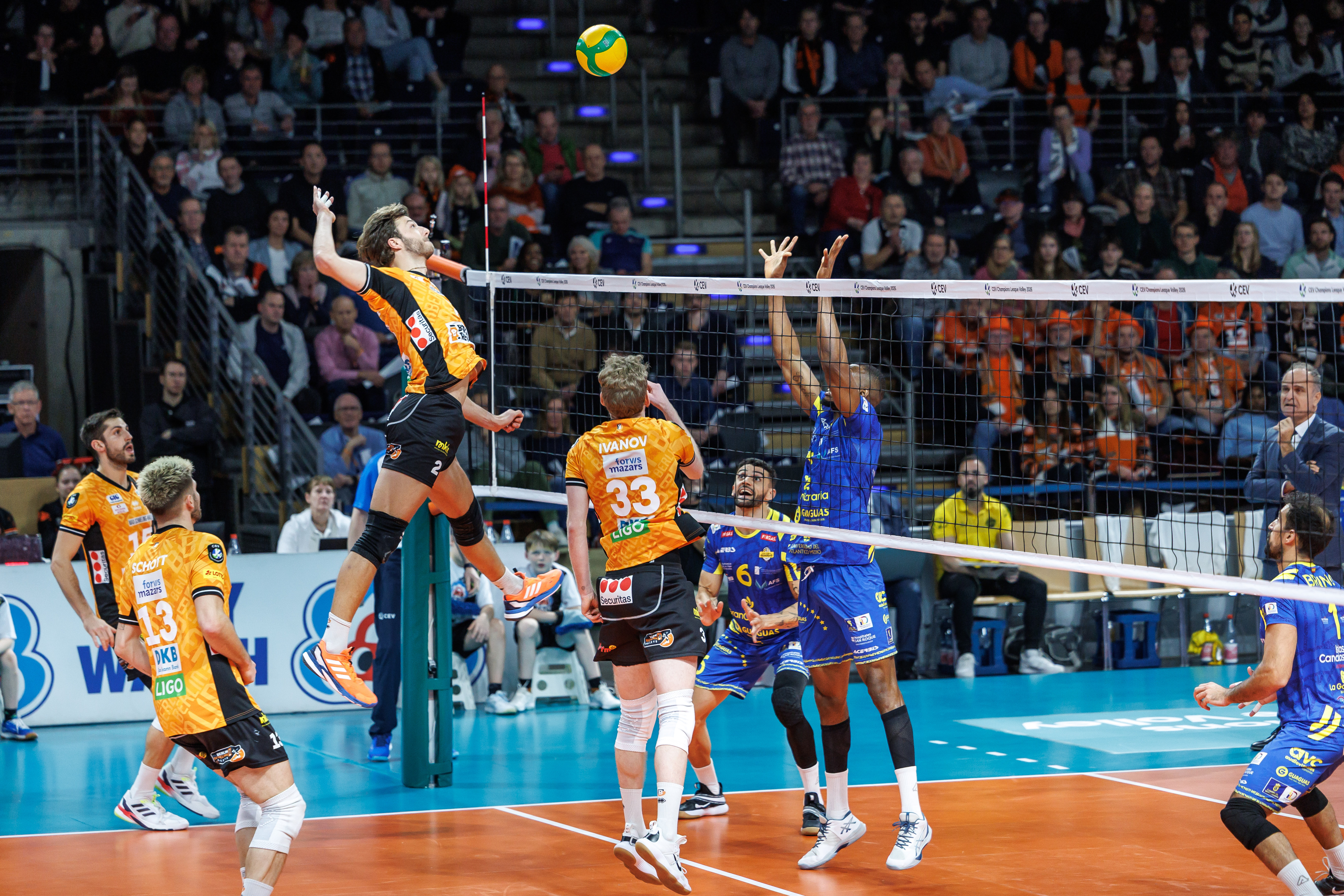 die Profivolleyballer der BR Volleys bringen auch in diesem Jahr die Champions League nach Berlin! Am 27. Jan steht das zweite Spiel der Gruppenphase auf dem Programm und nach zwei Siegen in den ersten Begegnungen stehen die Chancen gut, dass die europäische Reise für die BR Volleys weitergeht. Doch dazu muss gegen VK Lvi Prag unbedingt nachgelegt werden. Das erste Duell zwischen dem tschechischen und deutschen Meister hielt mit einem packenden Fünf-Satz-Match schon vollends, was es versprach. Mit der Unterstützung der Berliner Studierenden und dem Heimvorteil im Volleyballtempel sollen diesmal aber drei Punkte für unsere Männer in Orange her! Der nächste Europapokalabend steht bevor.
