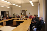 Bereis im Juni 2014 traffen sich die ersten Absolventen des Studiengangs Bauingenieure der TFH (Fachbereich 5 - heute Fachbereich III) - Abschluss 1974 zu einem gemeinsamen Besuch ihrer Alma Mater. Nun kammen sie am 1. März 2024, anlässlich ihres 50. Abschlussjubiläums wieder, neugierig, was aus dem alten Gebäude in der Kurfürstenstraße geworden ist, welches sich gerade im Umbau befindet, weil hier zukünftig nicht nur der Bereich Augenoptik/Optometrie des Fachbereich VII beheimatet sein wird, sondern auch die Robotik bald in die neuen Räumlichkeiten Einzug halten wird. Vieles hat sich verändert, und von dem ursprünglichen Studiengang Bauingenieurwesen (Tiefbau,Straßenbau) ist nichts mehr zu sehen. Schließlich stießen die Alumni auf einen alten Hörsaal, der, vollkommen entkernt, mit seinen ansteigenden Sitzreihen Erinnerungen an früher aufkommen ließ. Die Alumni sind gespannt, was die neuen Räume den Studierenden der BHT zukünftig zu bieten haben werden.