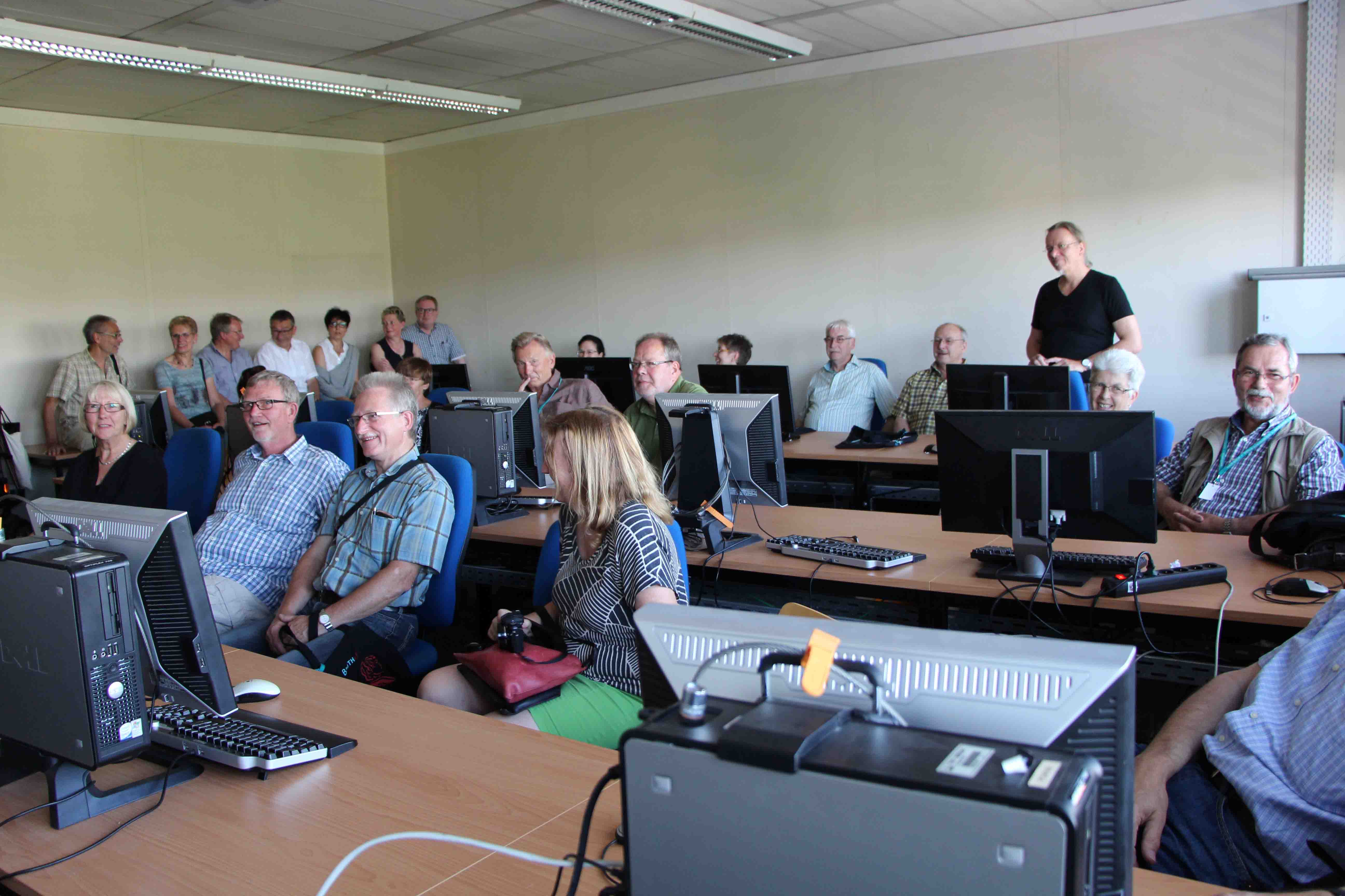 Anlässlich ihres 40. Jubiläums, traf sich der Studiengang Vermessungstechnik (TFH/Leinestraße) im Juli 2015 an der Beuth Hochschule. Im Anschluss an den Besuch der Labore für Photogrammetrie und Geodäsie luden die Professoren Bergmann und Korth die Alumni zu einem Gespräch. Danach ging es weiter zu einem Besuch des alten Schulgebäudes in der Leinestraße.