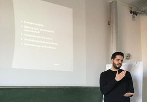 - externen Experten, die zu jedem Treffen für einen Impulsvortrag zu einem interessanten Thema (z.B. Arbeitsrecht, Finanzen, Selbständigkeit (StartUps), Soft Skills, Promotion, Aufgaben und Anforderungen an Führungskräfte...) eingeladen werden, aber auch Projekte vorstellten,