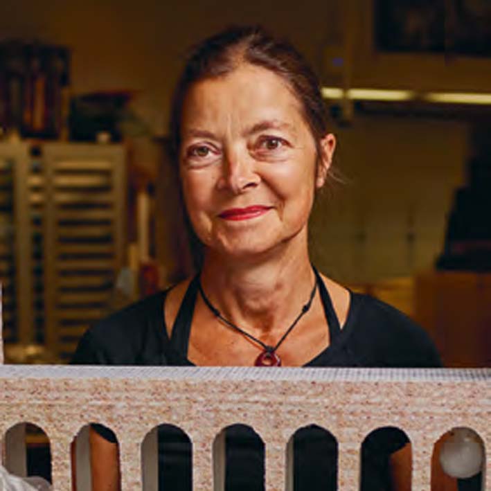 Der Lebenslauf von Angelika Winter-Kriseleit, die im Labor Theater- und Veranstaltungstechnik am Fachbereich VIII tätig ist, umfasst viele Seiten. Sie vermitteln einen Eindruck einer vielgestaltigen kreativen Karriere. Die Diplom-Bühnenbildnerin (Kunsthochschule Berlin-Weißensee) entwarf in der Vergangenheit beispielsweise Bühnen- und Kostümbilder für das Berliner Ensemble, die Berliner Philharmonie, die Schauspielschule Ernst Busch sowie zahlreiche Theaterhäuser und Filmproduktionen. Ihr Portfolio umfasst ebenso die Gestaltung von Museumsausstellungen. Seit dem Jahr 2008 arbeitet sie an der BHT mit Studierenden. „Im Labor bringe ich meine künstlerischen Erfahrungen ein“, sagt Angelika Winter-Kriseleit. In den Übungen zu Veranstaltungsgestaltung, Szenografie und Theaterbau unterstützt sie die Studierenden im kreativen Prozess. Dazu gehört etwa, Ideen zu entwickeln, Storyboards zu verfassen und Modelle zu erstellen, wobei auch Lichtgestaltung eine Rolle spielt. „Es macht mir viel Spaß, mit den jungen Leute zu arbeiten, ihnen Inspiration und Motivation zu geben.“ Ihre freie Zeit verbringt Angelika Winter-Kriseleit, die zwei Söhne und eine Tochter hat, gerne mit Fahrradfahren, Musizieren, Zeichnen und Lesen.